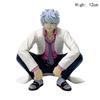 12cm Gintama Sakata Ginpa Silver Hair Lab Coat Figure Crouched Position Noodle Stopper Desktop Anime Decoration Collection Gift