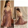 Сексуальный сетчатый кружевной комплект пижамы с глубоким V-образным вырезом, ночная сорочка-топ с разрезом сбоку, комплект из двух предметов для отдыха 311, полный кокетливый комплект для сна с соблазнительным дизайном с разрезом сбоку