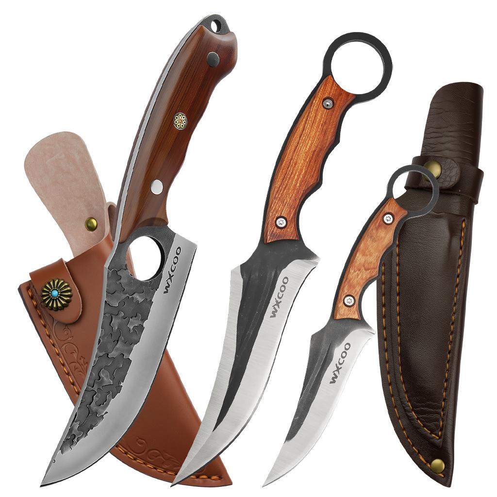 Профессиональный нож для мяса Кованый нож для разделки Нержавеющая сталь Топор Кухонный нож шеф-повара Ножи для мяса, рыбы, фруктов с чехлом