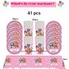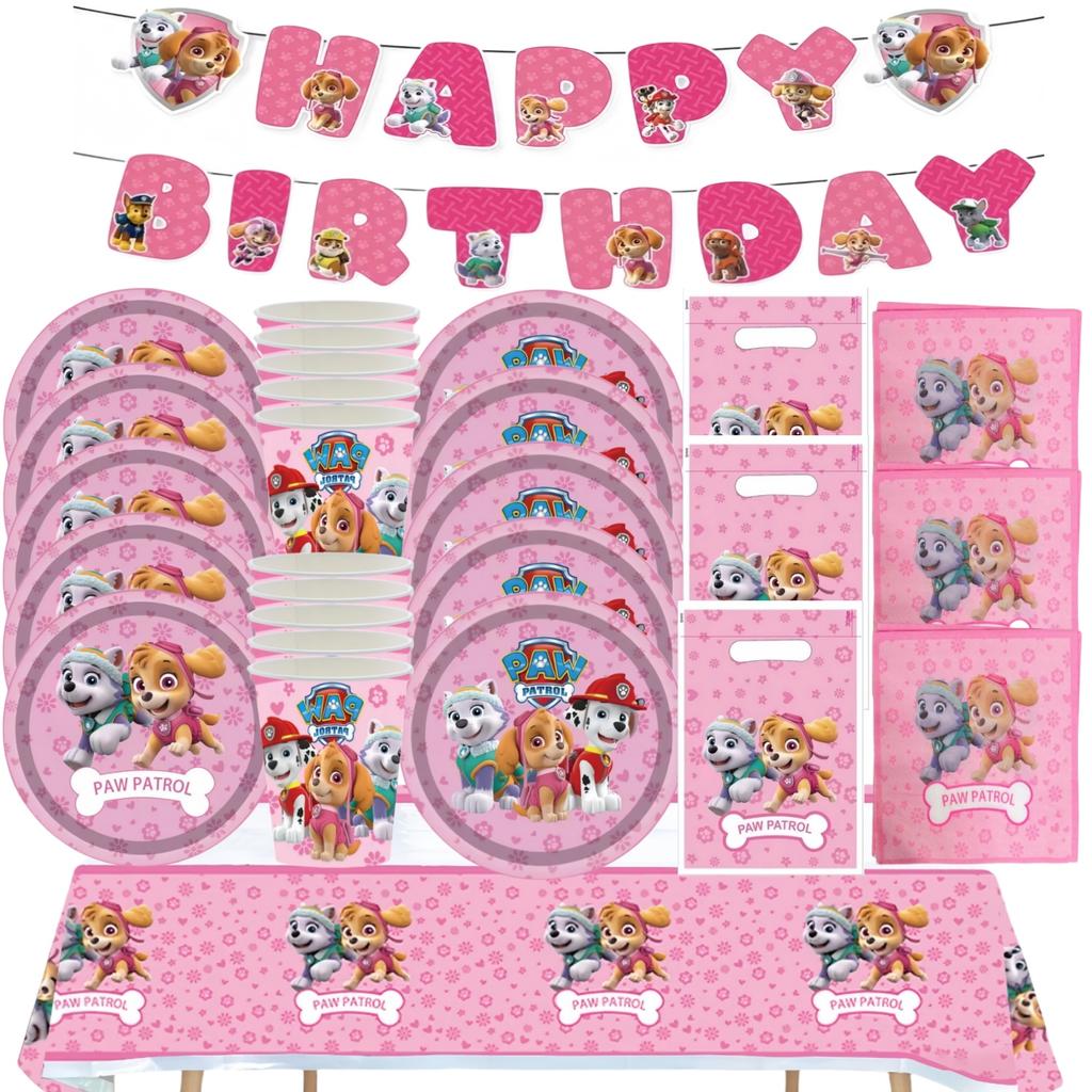 Розовая Вечеринка в честь Дня Рождения Щенячий Патруль Декор Скай Одноразовая Посуда Скатерть Тарелки Фольгированные Шары Праздник для Малыша Девичник Товары для Вечеринки