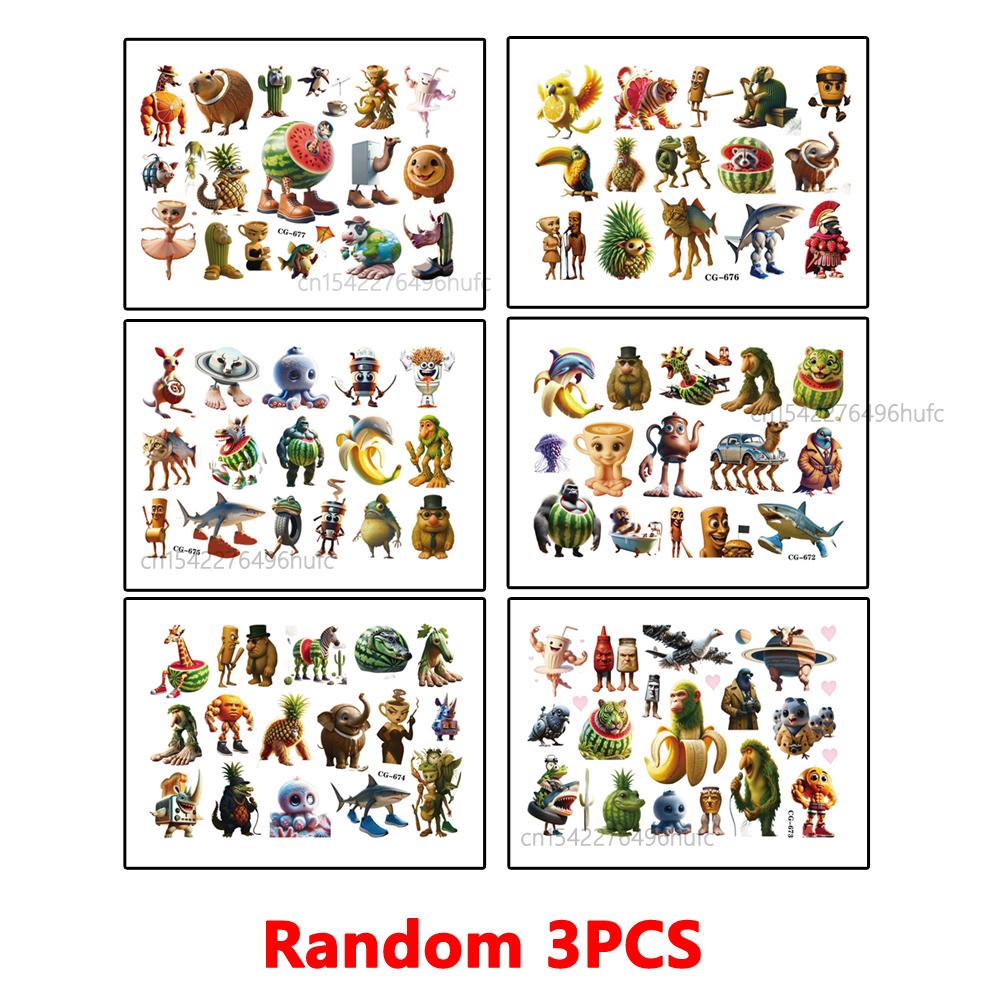 6/3/1Pcs Tung Tung Sahur Abstract Animal Tattoo Stickers Italian Brainrot Funny Temporary Tattoo Body Art Tattoo Stickers Toys
