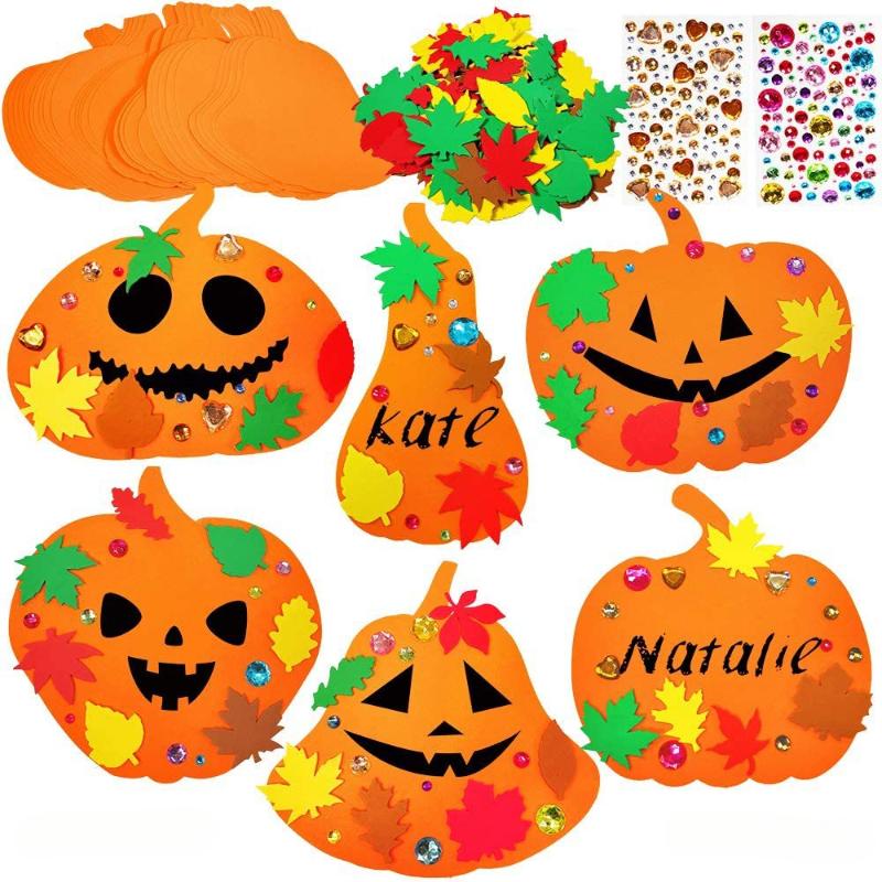 Halloween Pumpkin Craft Kits Foam Pumpkin Shapes with Halloween Stickers Jack-O'-Lantern Face Stickers DIY Pumpkin Craft