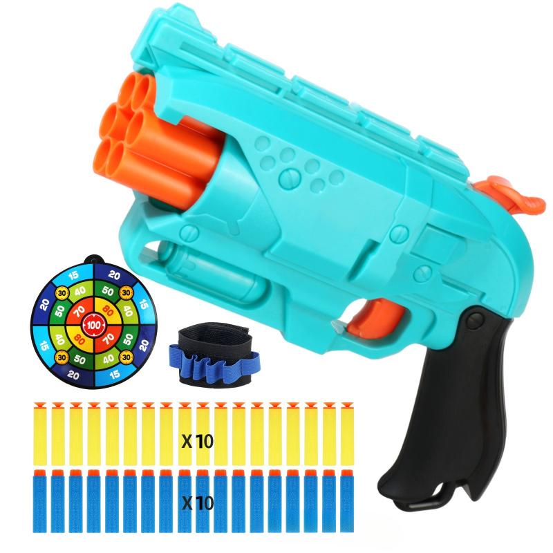 Детский пистолет на мягких пулях 6-S с 20 пулями, мишень, браслет-мишень, игрушечный пистолет Nerf Blaster, для стрельбы в помещении и на улице, бластер с дротиками, подарок
