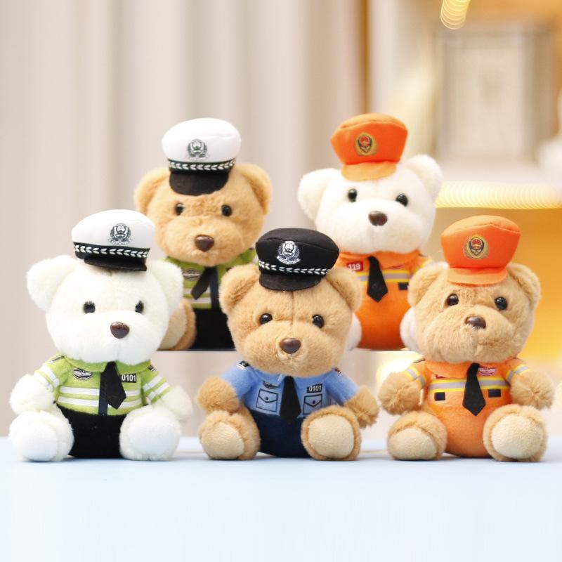 Cute Bear Toy Keychain Traffic Police Themed Bear Plush Toy Stuffed Doll Soft Plush Pendant Charm For Car Backpack Decor Gift — купить товар онлайн с бесплатной доставкой по всему миру!