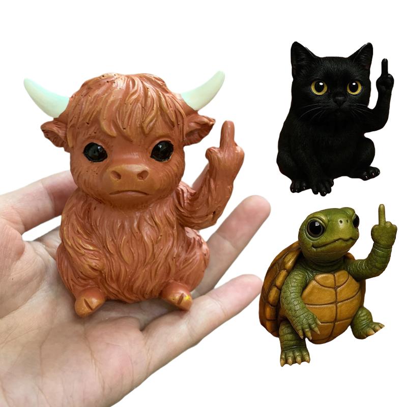 Забавная статуэтка животного Хайлендской коровы со средним пальцем Мини-фигурка милого кота Настольное украшение Скульптура черепахи из смолы Для дома и офиса