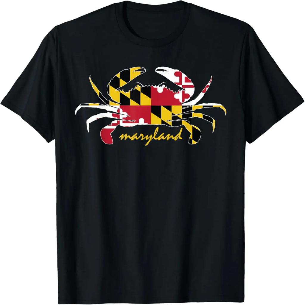 Maryland Crab Cute State Pride Flag T-Shirt,100% cotton — купить товар онлайн с бесплатной доставкой по всему миру!
