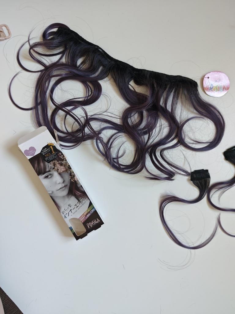 Крутейшие волосы на заколках из Японии, мне понравились и намного лучше исполнены, чем те, что я приобретала с доставкой из Китая. Понятно, что и там и там made in China, ну и цена разная, выбирать вам. Волосы держатся отлично, это скорее пряди. Две маленькие вперёд и сзади длинная прядь. Волосы сразу намного объемнее выглядят, а для меня это актуально. Мне нравится, как смотрится на предварительно завитых локонах, ТК сами пряди тоже волнистые. Доставка три недели в постамат цайняо а Санкт-Петербурге.