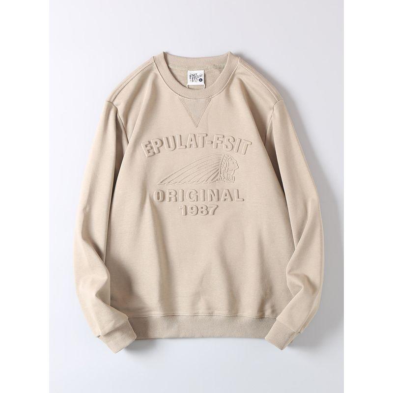 Foreign Trade Surplus Indian 3D Head Letter Print Pullover Sweatshirt Men's Long-Sleeve Casual Loose Crewneck Jacket