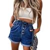 Женские летние джинсовые шорты с высокой талией, джинсовые шорты, женские джинсы с эластичной резинкой на талии и оборками, короткие женские джинсы