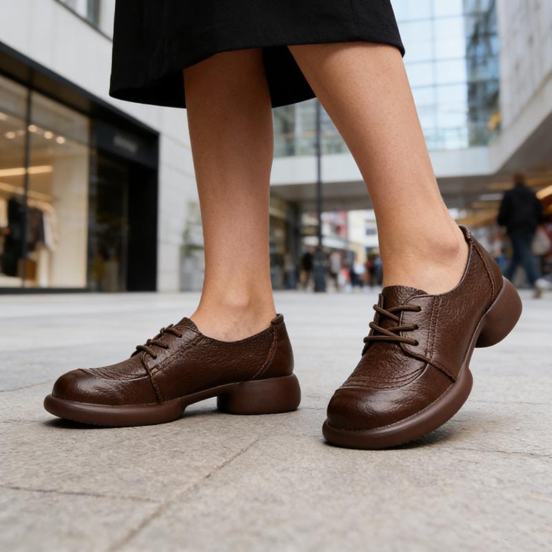 Весна Осень Натуральная Кожа Мамины Туфли Женские Толстая Подошва Мягкий Комфорт Коровья Кожа Женская Повседневная Обувь Черный Коричневый Большой Размер 41