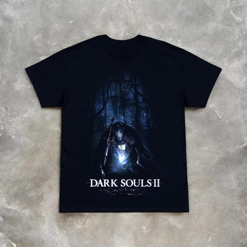 Ретро стиль Dark Souls 2 Тематика Душ ретро Y2K видеоигра Футболка всесезонная для пар чистый хлопок стритвир мужская одежда топ