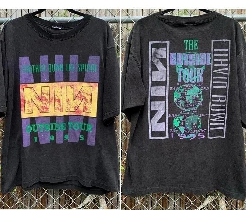 Рок Ретро Топы 1995 Дэвид Боуи The Outside Tour 2 Стороны Черный Унисекс Футболка Короткий Рукав Женщины Мужчины Круглый Вырез Хлопок Футболка