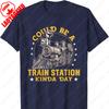Retro Rail Vibes Could Be A Train Station TShirt Vintage Locomotive Design Cotton Urban Explorer Unisex Printed Tshirt Tops