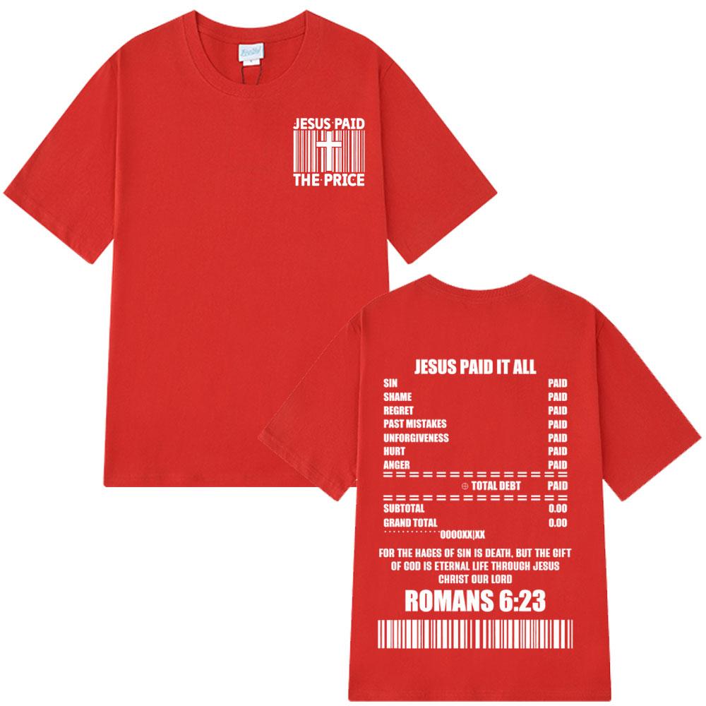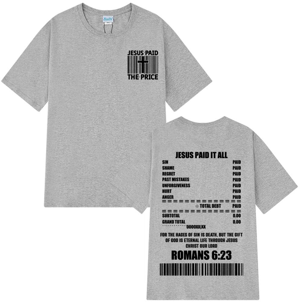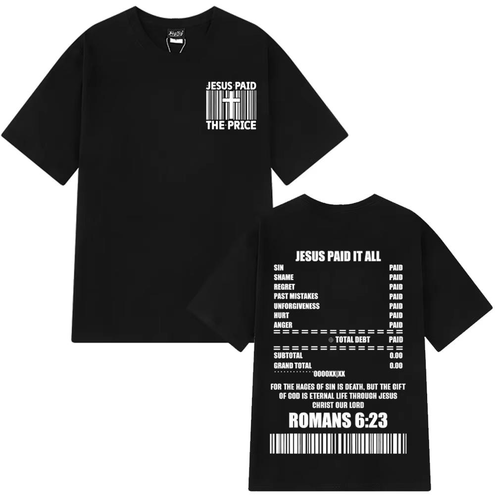 Лето 2025 Иисус Заплатил Цену Христианский Библейский Стих Графическая Футболка с Коротким Рукавом 100% Хлопок Оверсайз Дышащая Мужская Женская Футболка