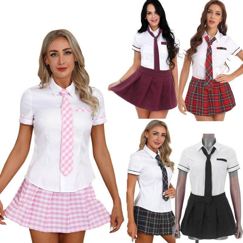 Женский костюм школьницы, комплект, рубашка с короткими рукавами, плиссированной юбкой и галстуком, школьная форма, нарядное платье для косплея