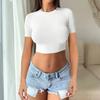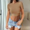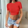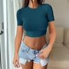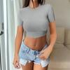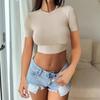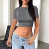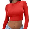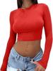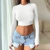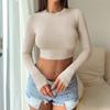 Spice Girl Однотонный Топ с Круглым Вырезом и Длинным Рукавом на Пуговицах, Узкая Короткая Сексуальная Футболка Женская