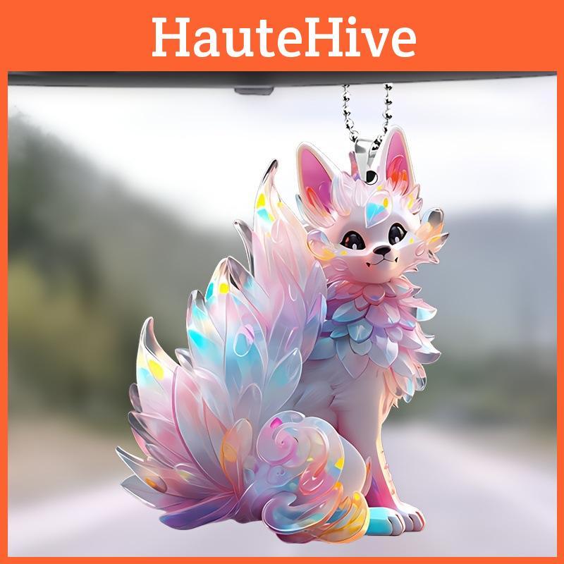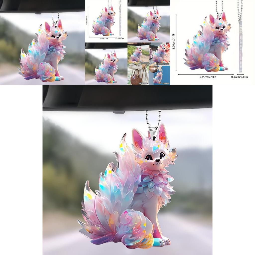 Очаровательный красочный лис акриловый декор зеркала заднего вида для салона автомобиля брелок и подвеска для рюкзака