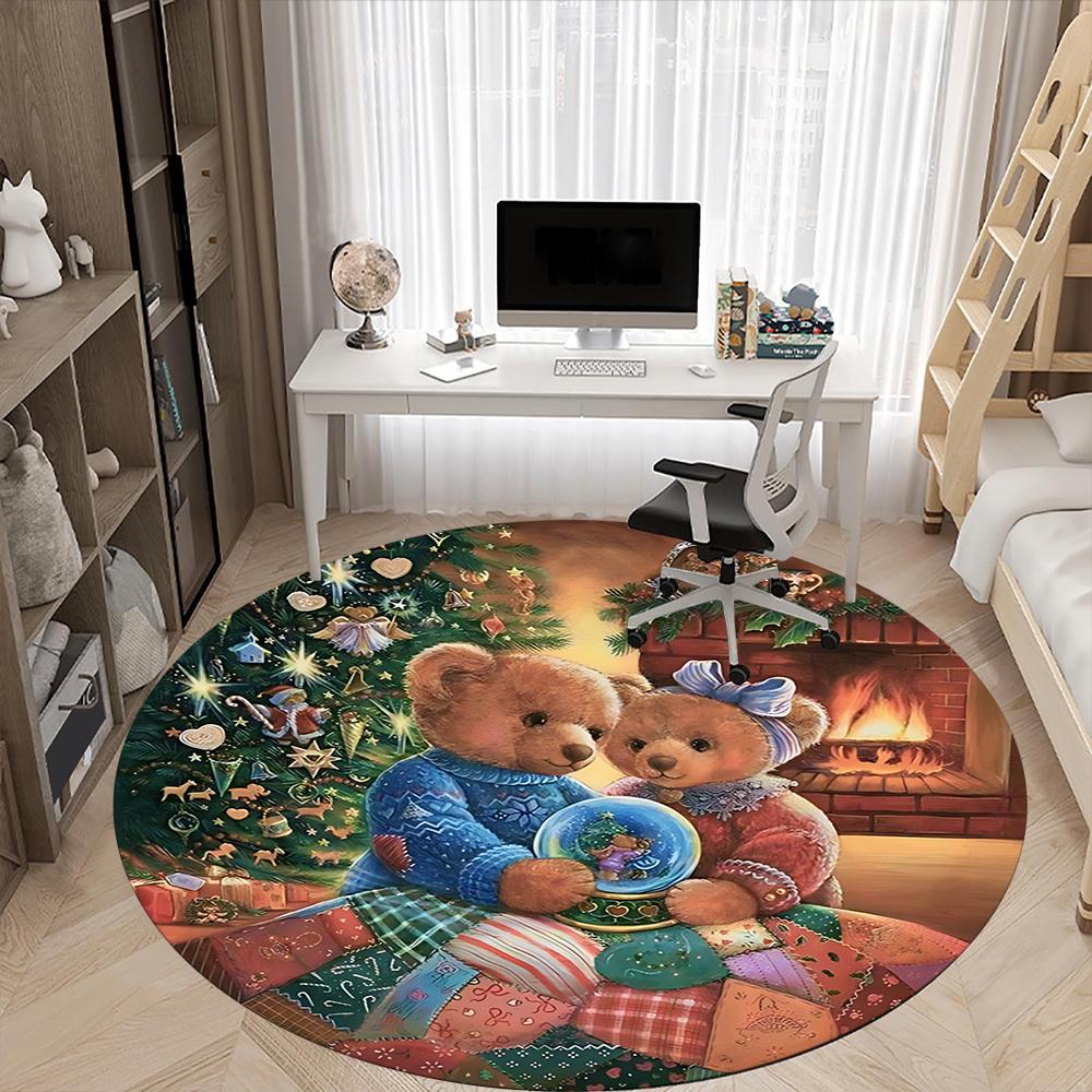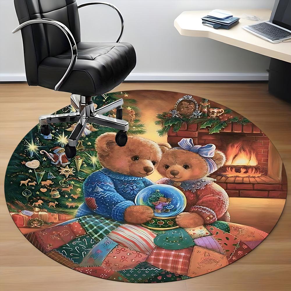 1pc Teddy Bears Christmas Chair Carpet for Office, Indoor Non Slip Washable Polyester Fiber Carpet,