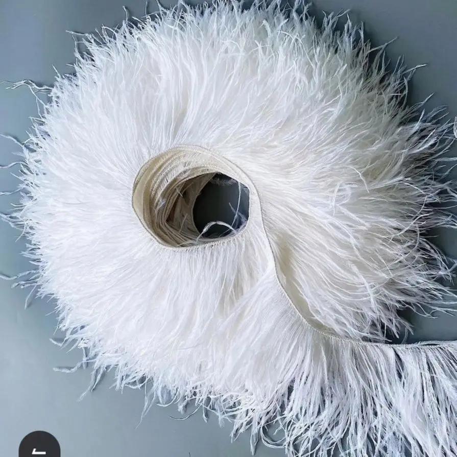 Белая страусиная перьевая отделка для свадебного платья, вечеринки, декоративной одежды, швейные аксессуары, 10-22 см, длинная бахрома из перьев