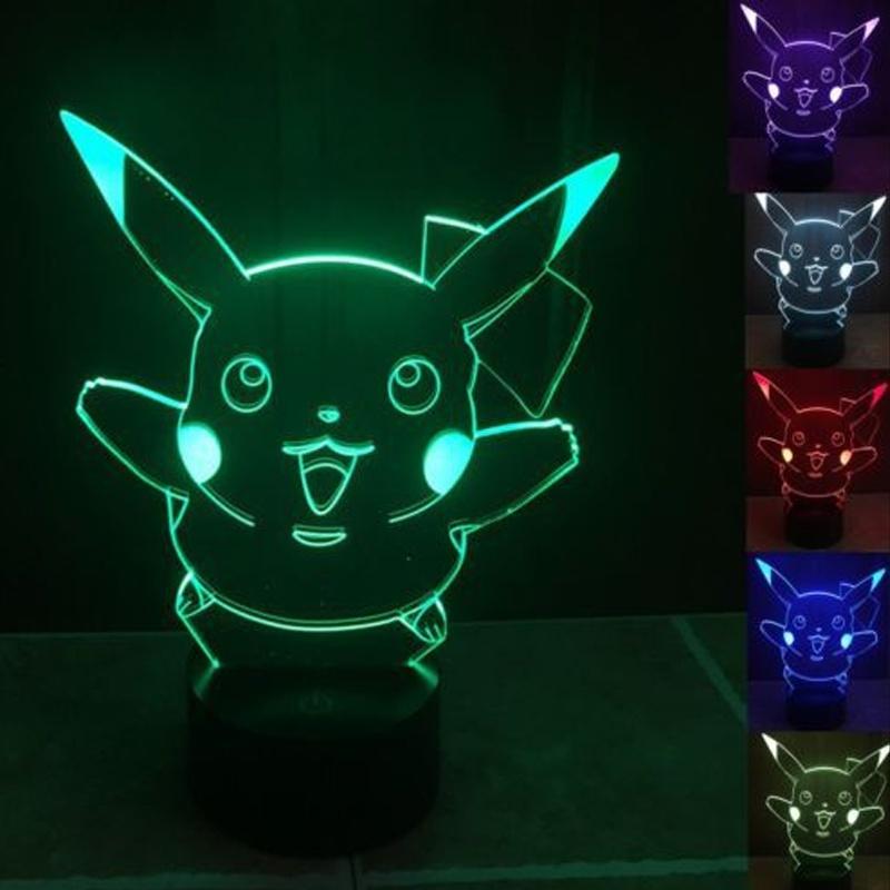 Очаровательный ночник Покемон Пикачу, идеально подходящий для декора спальни и гостиной, 3D LED с 7 цветами — купить товар онлайн с бесплатной доставкой до всему миру!
