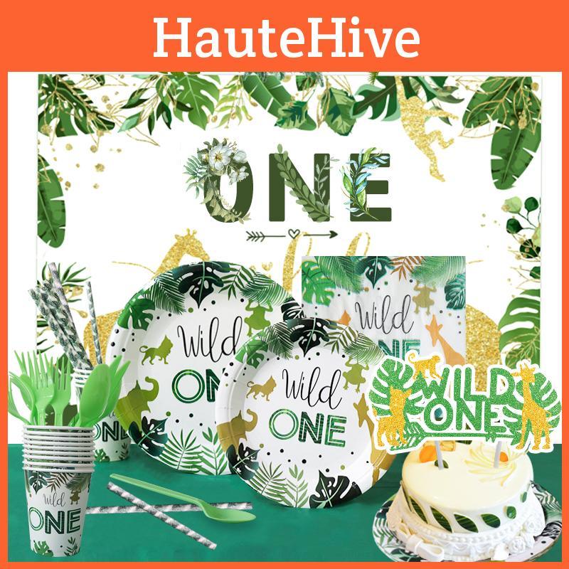 Сделайте вашу вечеринку яркой с этими зелеными тематическими украшениями с лесными животными и надписью 'Дикий один'