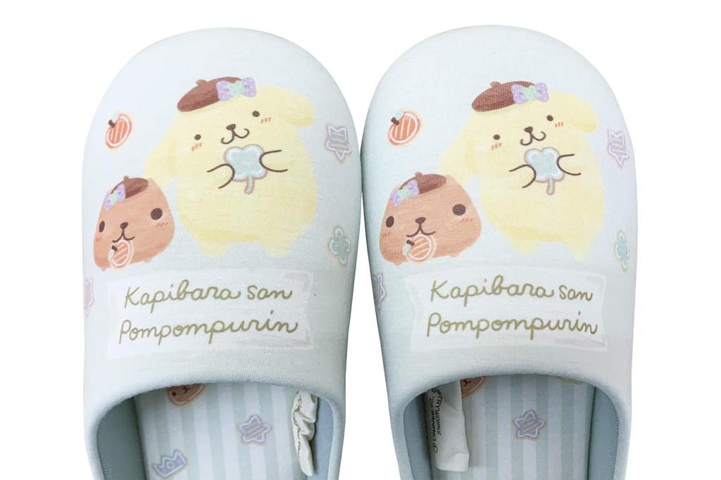 Ателье Момо и Момо: Тапочки Капибара x Помпонпурин, комнатные тапочки, домашние тапочки, подарок, размер M 23-25см, мятно-зеленый, KPZ43981-51