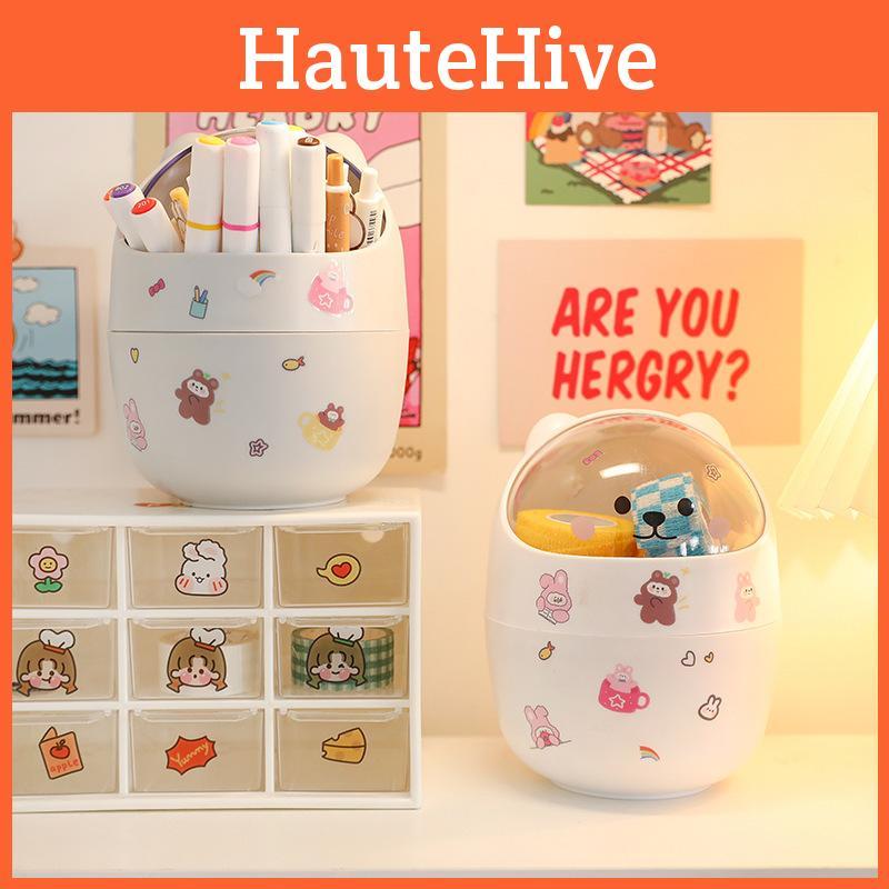 Trash Ins Desktop Can With Lid Mini Cute Storage Box Pencil Organizer Flip