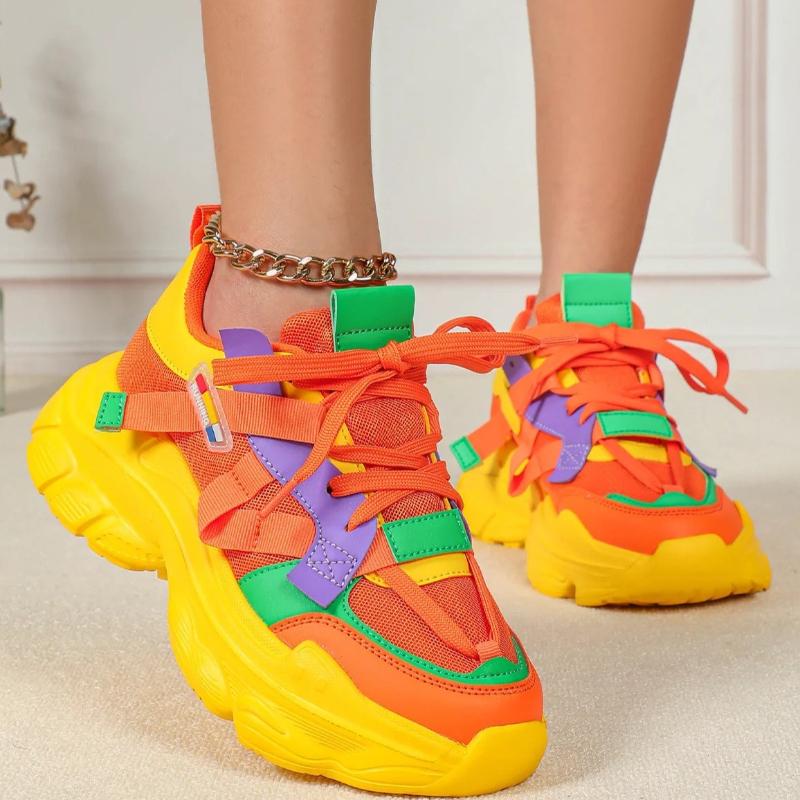 Модные массивные женские туфли на платформе, повседневные кроссовки, сетчатые кроссовки для ходьбы, дышащие, модные, платформа, "папины" кроссовки, на шнуровке