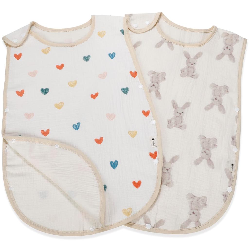 Детский слип Lipilea, 4-слойная марля, 100% хлопок, для девочек и мальчиков, подарок на выписку, для новорожденных, возраст 0-3 (1. Сердце и Кролик [Набор из 2 шт.])
