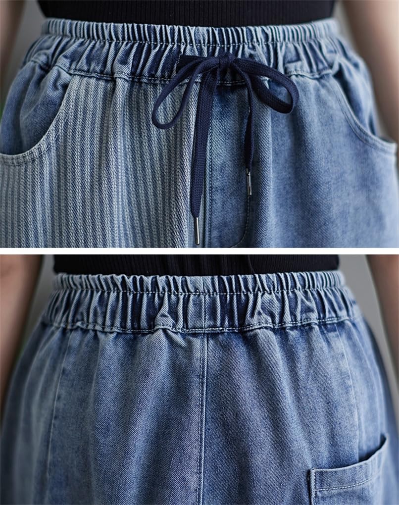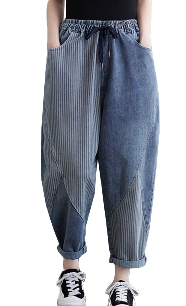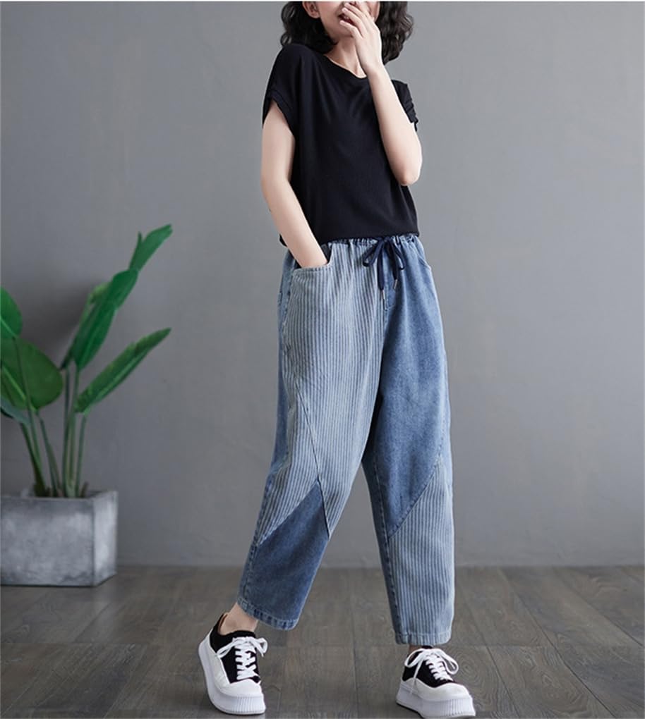 [Mohokyo] Women's Wide-Leg Sarouel Gaucho Pants with Elastic Waist, Casual, Cropped Length, and Flattering Fit, Sizes M-2XL (Color shown, L, L)
