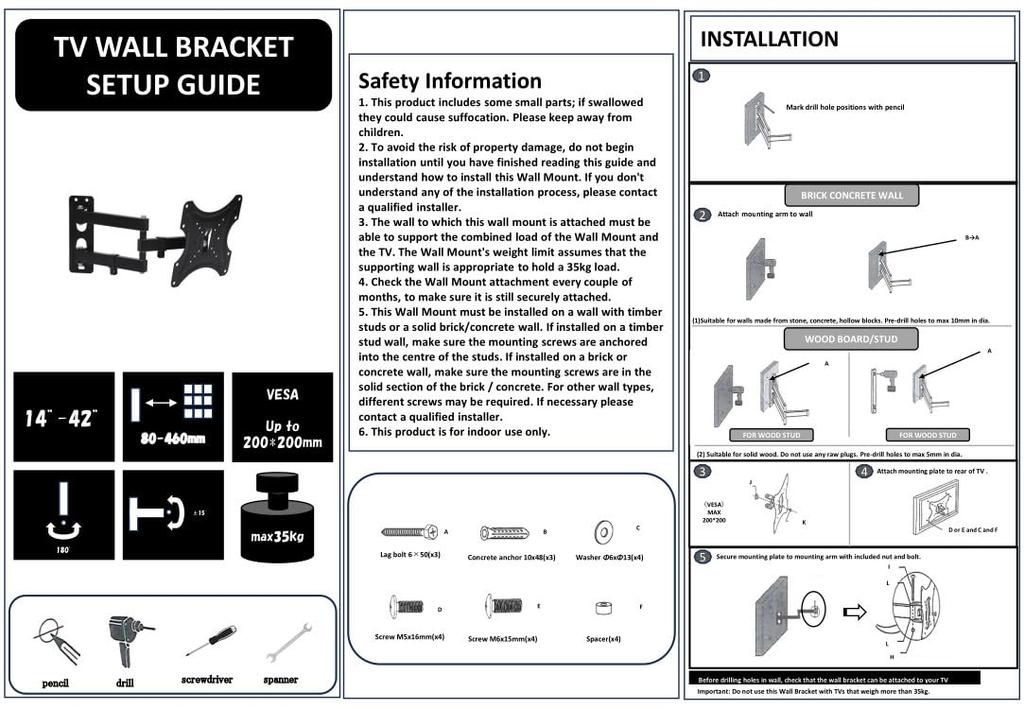 Monitor Wall Mount (VESA Standard, Angle Adjustable, 1-Arm Type, Compatible with 14-42 inch, LED/LCD), Model 2, BS-MH28-KR