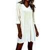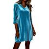 Women's Fashionable Color V Neck Seven Quarter Sleeved Loose Gold Velvet Casual Dress
