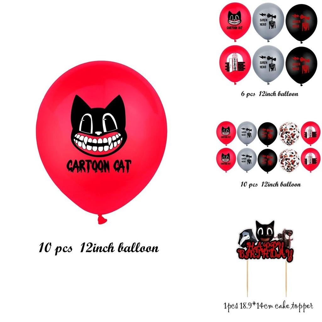 Сиреноголовый Мультяшный Кот Тема Ужасов Баннер из Воздушных Шаров Набор Топперов для Торта на День Рождения