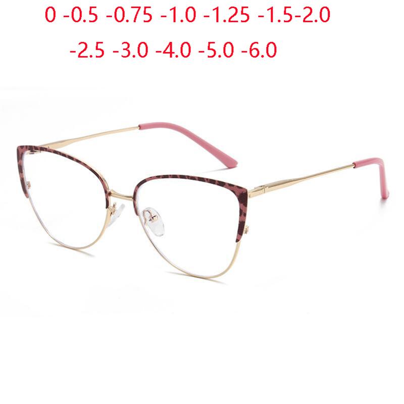 Женские очки кошачий глаз с защитой от синего света, металлические леопардовые оправы, очки для близорукости, диоптрии от 0 -0.5 -0.75 до -6.0