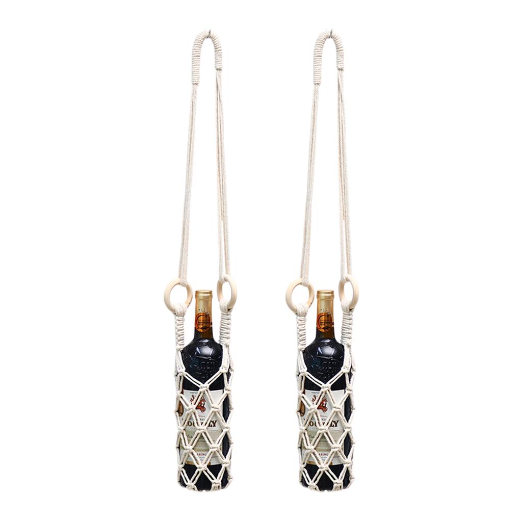 Macrame Water Bottle Holder Portable Hanging Water Bottle Net Bag Handmade Hanging Basket Tote Bag for Hiking Cycling Fitness