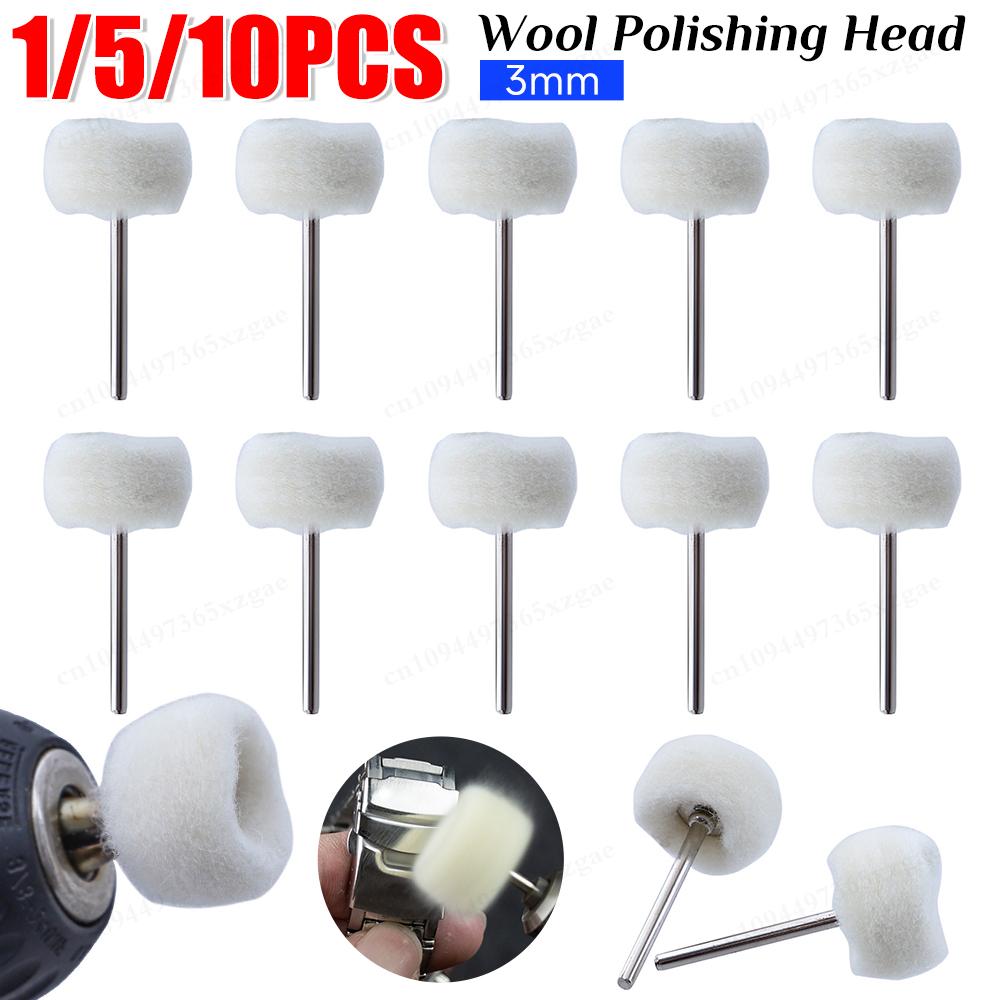 1/5/10PCS Wool Felt Grinding Sanding Head Abrasive Buffing Wheel 3mm Shank Cotton Thread Polishing Mini Brush for Dremel Dril