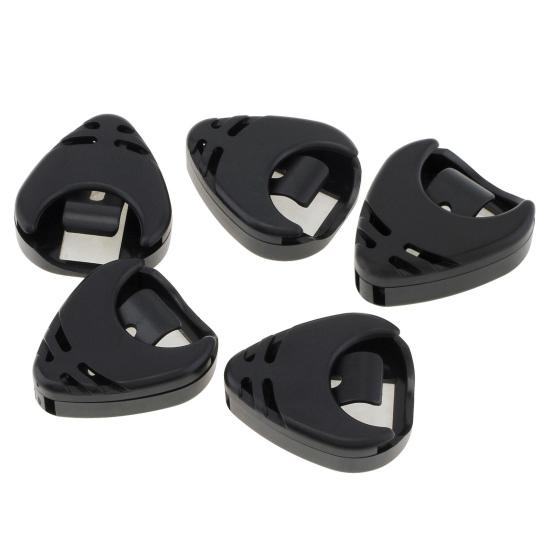 Универсальная емкость: Этот набор включает 5 черных держателей для медиаторов, каждый из которых вмещает 2-4 медиатора, что обеспечивает достаточно места для хранения различных медиаторов, подходящих для электрогитар, акустических гитар, бас-гитар, укулеле и многого другого.