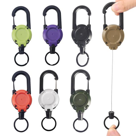 Выдвижной брелок рассчитан на длительный срок службы и оснащен прочным стальным тросом и мощными пружинами, способными выдерживать нагрузку до 220 граммов и более 100 000 растяжений.. Трос растягивается плавно, без запутываний, что обеспечивает долговечность и надежность.. Портативный и практичный брелок оснащен большим карабином, который надежно крепится к сумкам, ремню или рюкзакам, обеспечивая быстрый и легкий доступ к ключам.