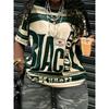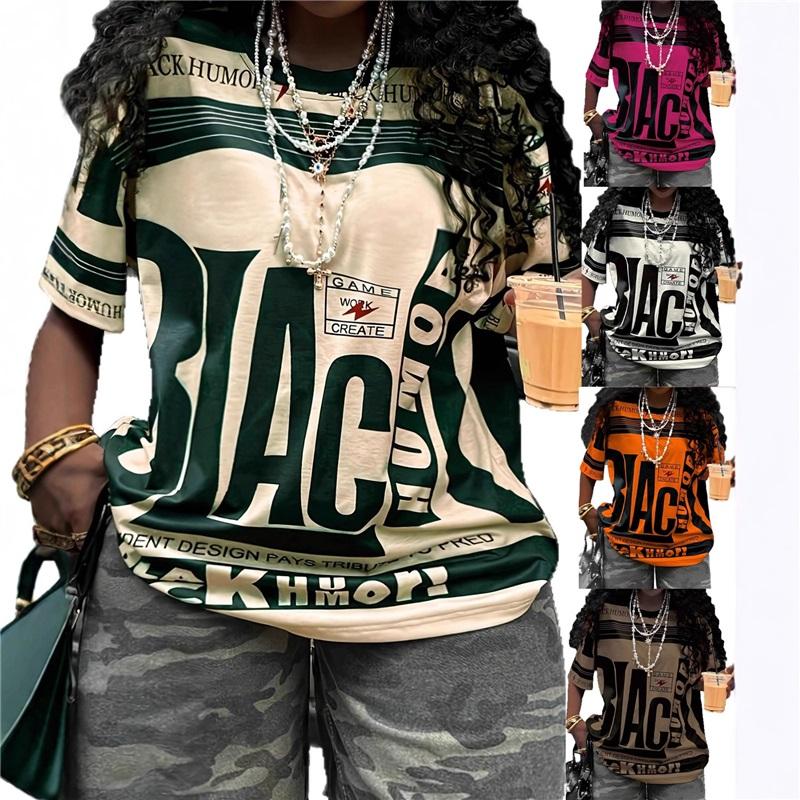 Большая американская ретро ЧЕРНАЯ футболка с принтом, короткий рукав, для женского уличного стиля, свободная и стройнящая, контрастный топ с половиной рукава