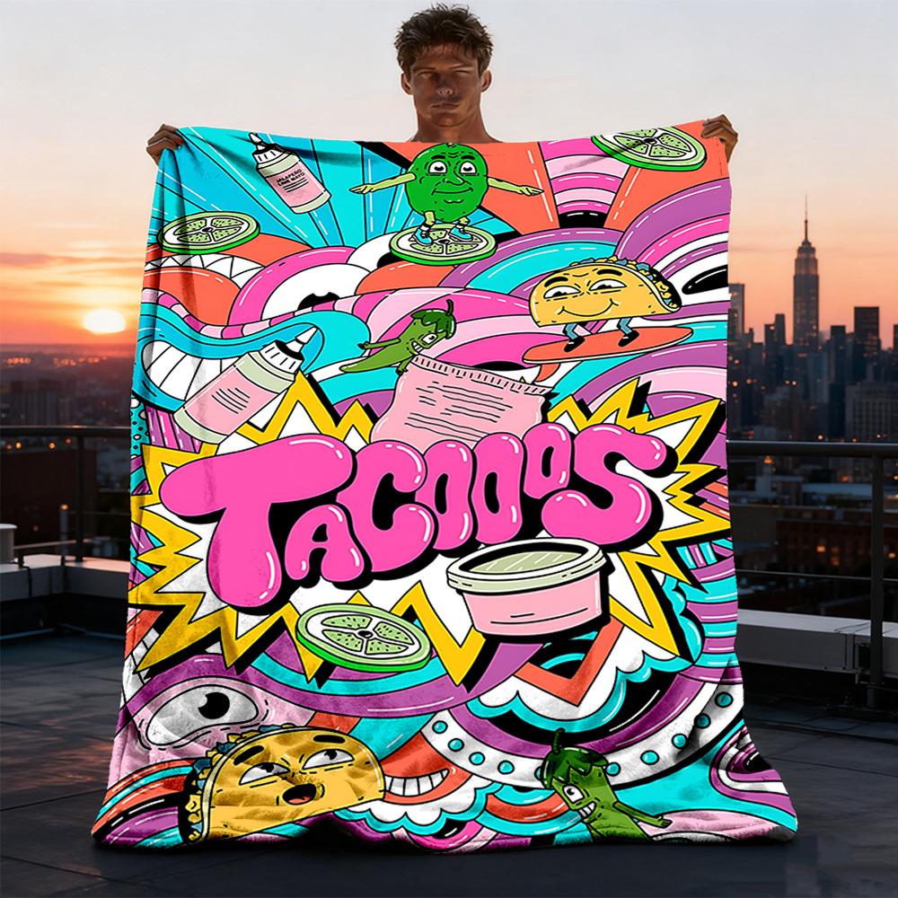 1pc Tacos Outdoor Flannel Blanket, Lightweight Warm Cozy for Travel Camping Office Soft Polyester Fabric