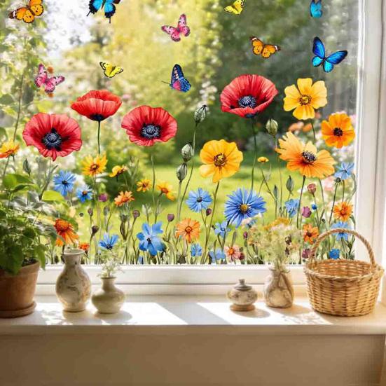 Преобразите свое жилое пространство с помощью этой универсальной стеклянной наклейки, идеально подходящей для окон, стеклянных дверей, зеркал и других гладких поверхностей.. Благодаря прекрасному сочетанию весенних цветов и элегантных бабочек, он привносит в любую комнату атмосферу природы и исцеления, создавая теплую и расслабляющую обстановку..
