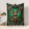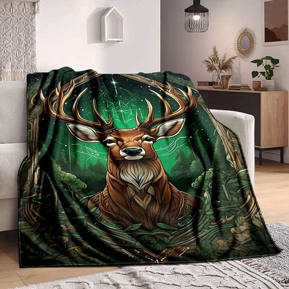 1 шт. Фланелевое одеяло с принтом мистического оленя [Уютное плед] Для дивана, кровати, путешествий, кемпинга, гостиной, офиса, дивана, кресла и кровати