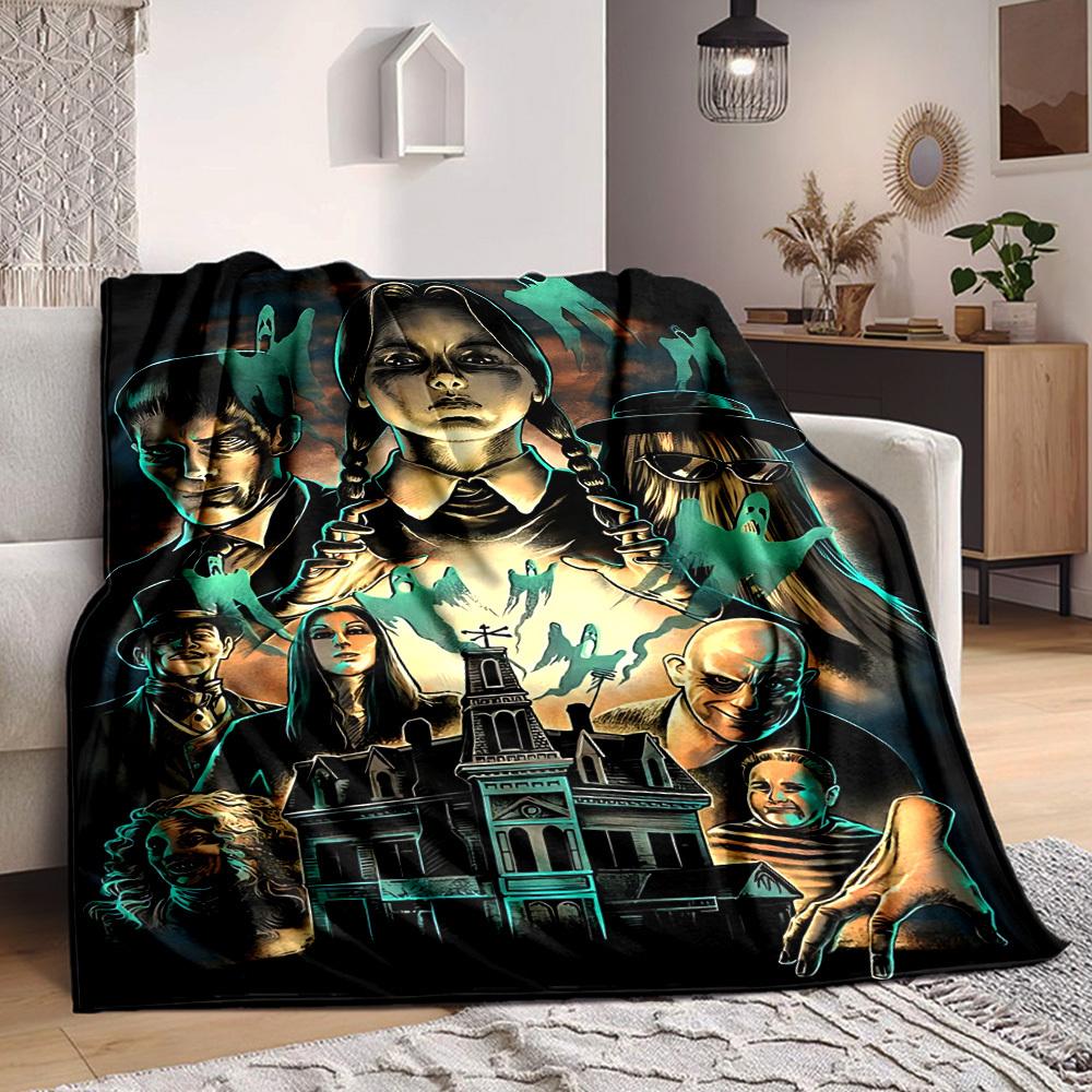 1 шт. Фланелевое одеяло Семейка Аддамс [Уютное покрывало] Для дивана, кровати, путешествий, кемпинга, гостиной, офиса, дивана, кресла и кровати