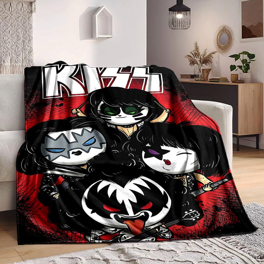 1 шт. Плед с символикой группы KISS, мягкий, для всех сезонов, с ярким дизайном, идеально подходит для дома, путешествий и в качестве подарка, идеален для дневного сна и кемпинга