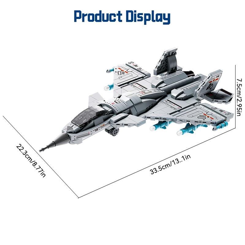 Размером 33,5 см (13.1 дюйма) длинный, эта модель истребителя J-15 изготовлена из высококачественных, безопасных строительных материалов. Достаточно прочный для игр и достаточно стильный, чтобы выставлять на полках — идеален для коллекционеров военных конструкторов.