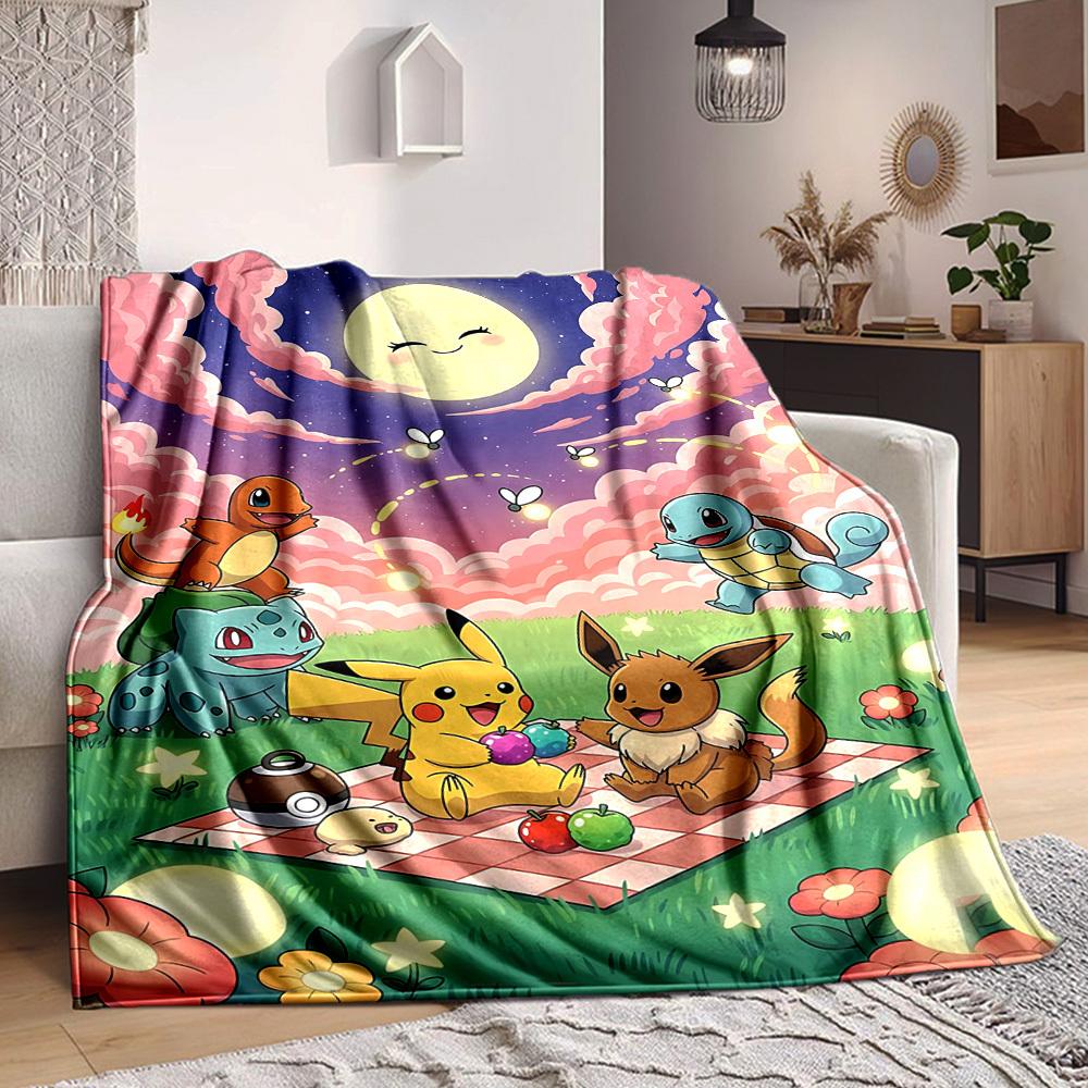 1pc Pokémon, Picnic Blanket Soft All Season Throw with Vibrant Design, Perfect for Home, Travel, and Gifts, Ideal for Naps and Camping