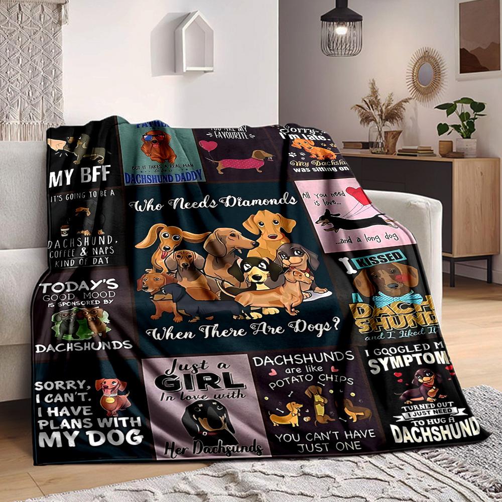 1pc Dachshund, Dog Lover Blanket, Lightweight Flannel Throw For Sofa, Bed, Travel, Camping, Livingroom, Office, Couch, Chair — купить товар онлайн с бесплатной доставкой по всему миру!