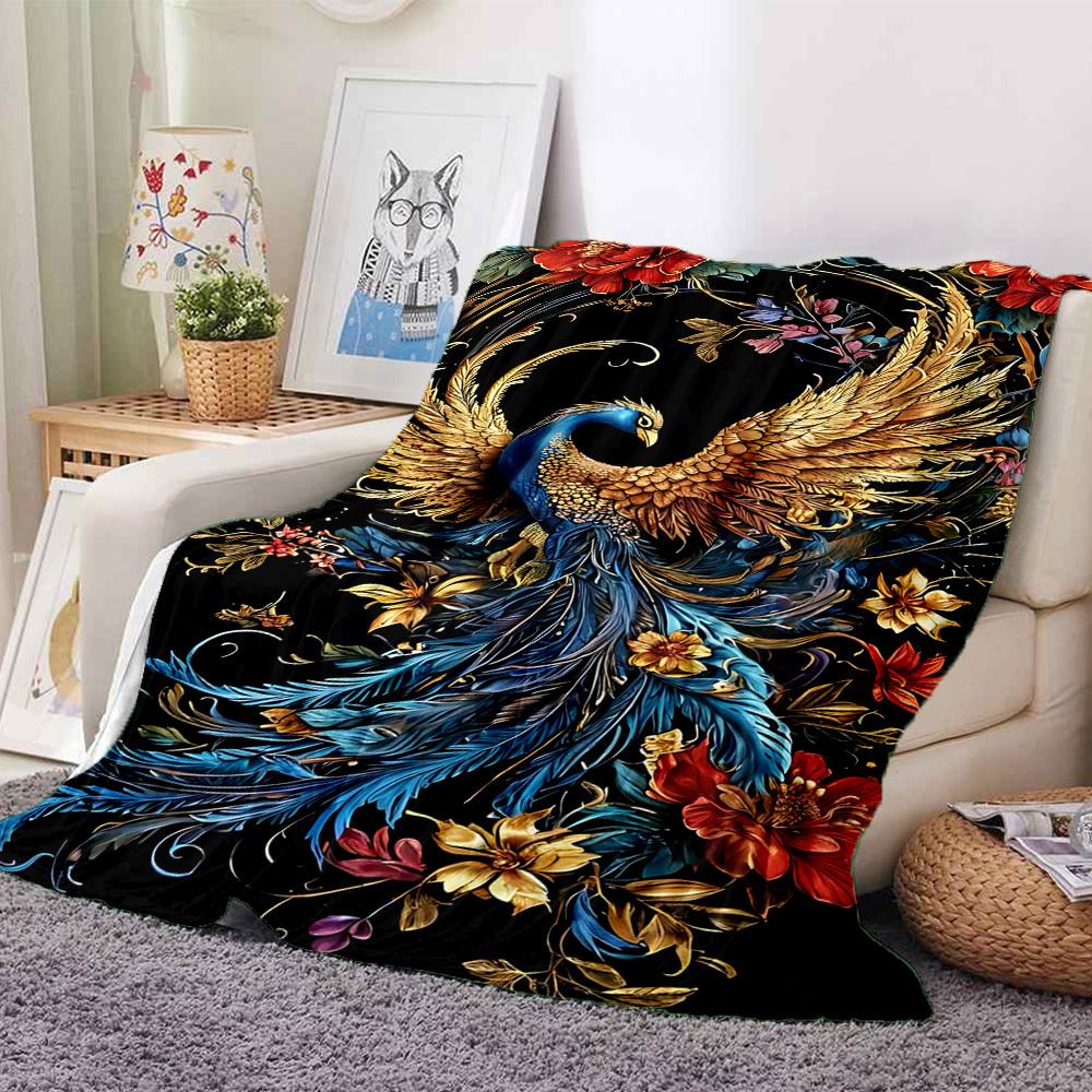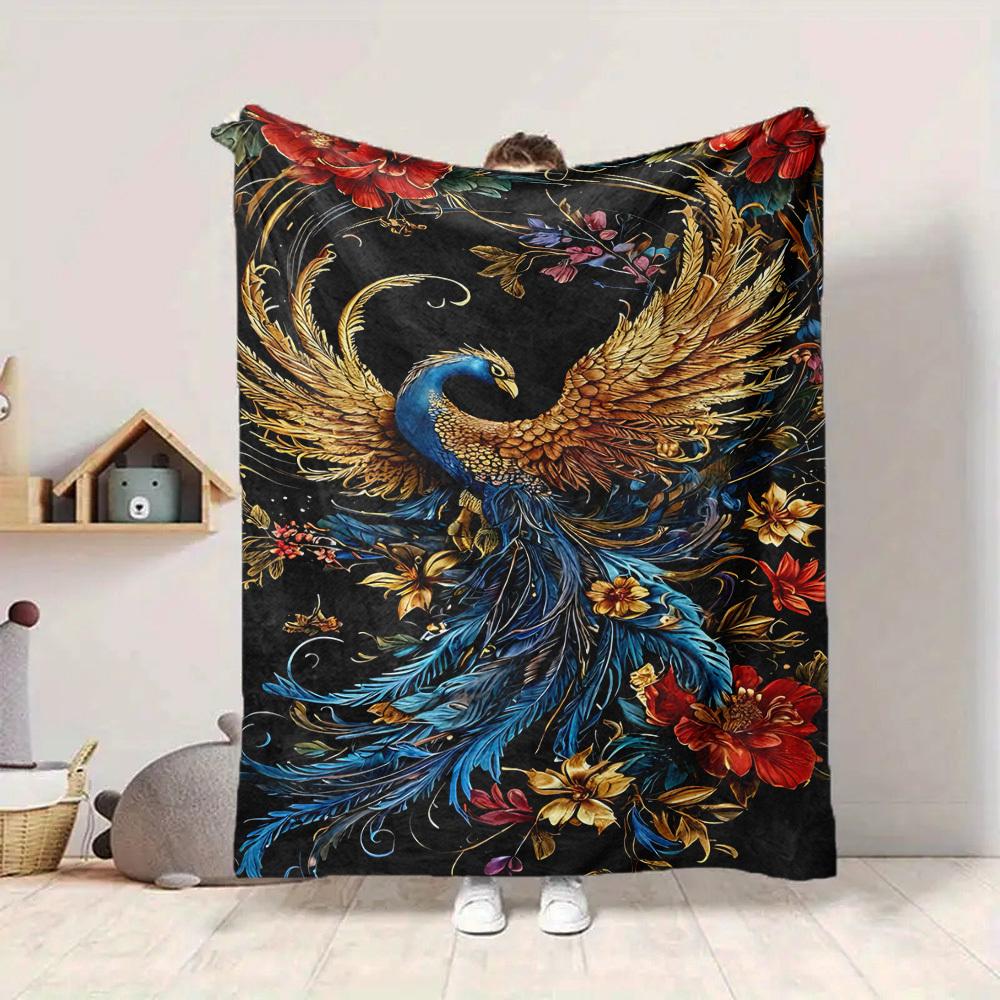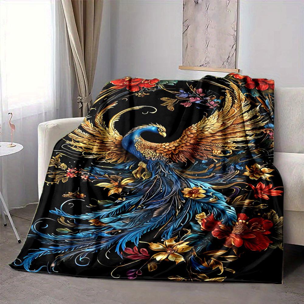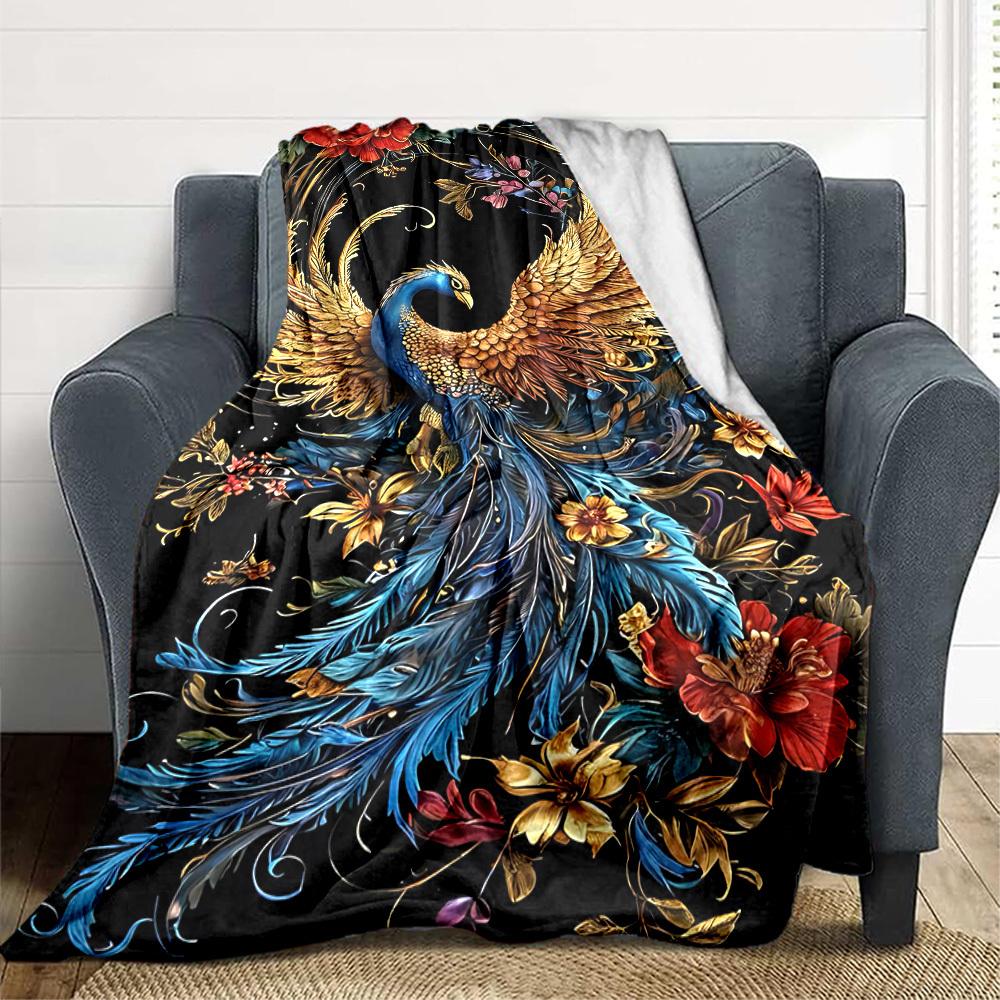 1pc Phoenix Feather Blanket, Lightweight Flannel Throw For Sofa, Bed, Travel, Camping, Livingroom, Office, Couch, Chair