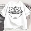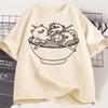 Футболка в японском стиле с котом и раменом, хлопковая, с коротким рукавом, кавайная аниме футболка, графические футболки с раменом и котенком, милая футболка с едой, одежда