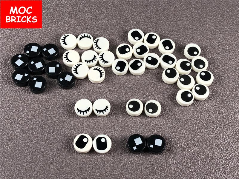 25pairs/lot MOC Bricks Tile Round 1 x 1 with Black Eyes with Pupil Squinting Eyelashes Pattern Building Blocks DIY Toys gifts